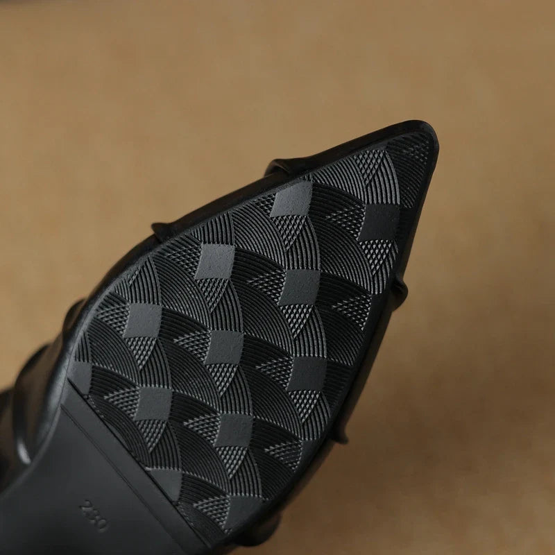 Crafted from premium vegan leather with pleated detailing, the Palermo Pleat Slingback Heels bring effortless sophistication to every step. A pointed toe elongates the silhouette, while the elastic slingback strap ensures a secure, comfortable fit.